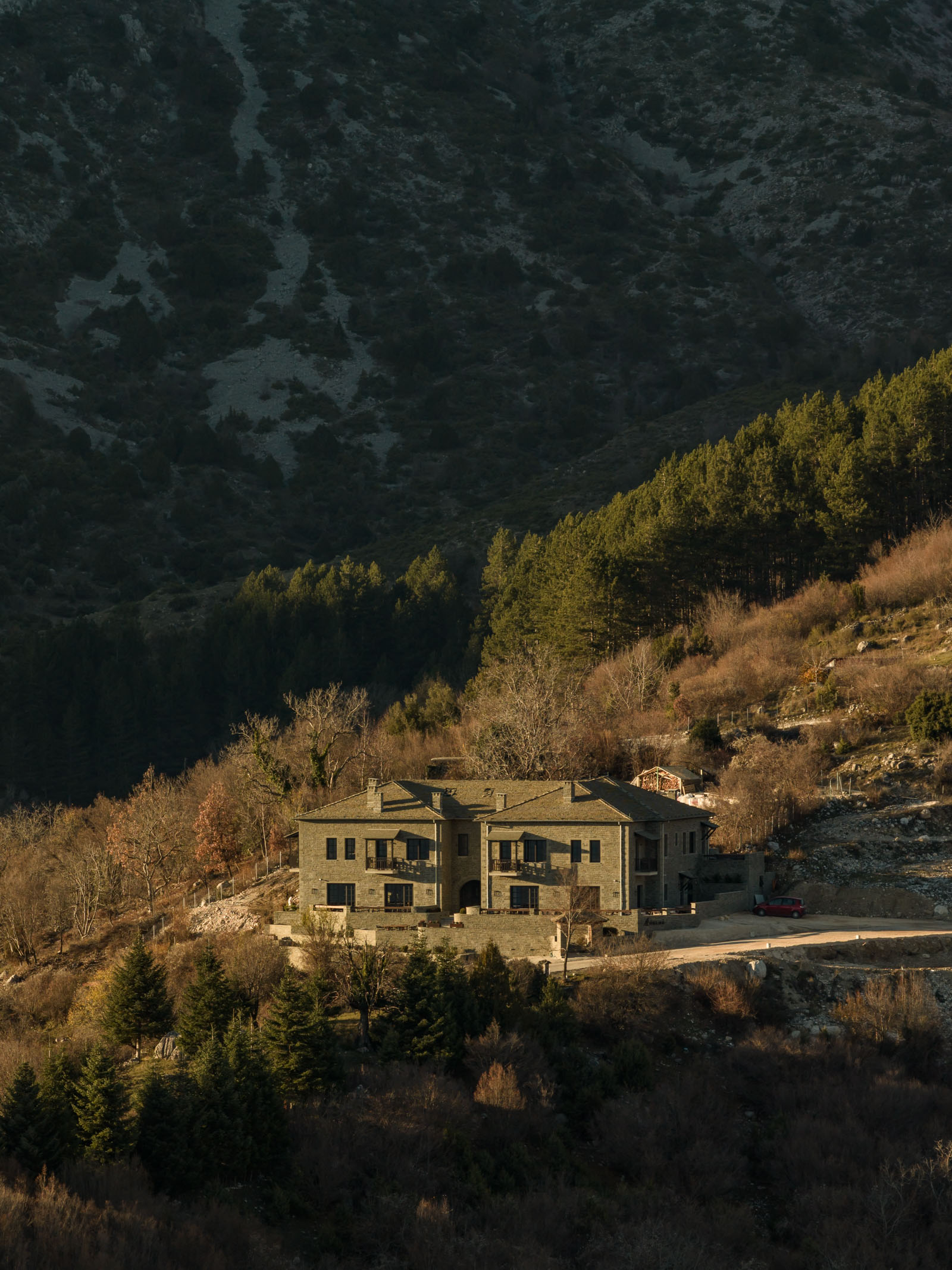 Orenô Mountain Retreat is located in Tsepelovo, within the Zagori region, a landscape intensely imbued with cultural and natural beauty, a UNESCO World Heritage Site. The design approaches tradition as a structural principle rather than a visual motif, reinterpreting local architecture through its proportions, geometry, and materiality.