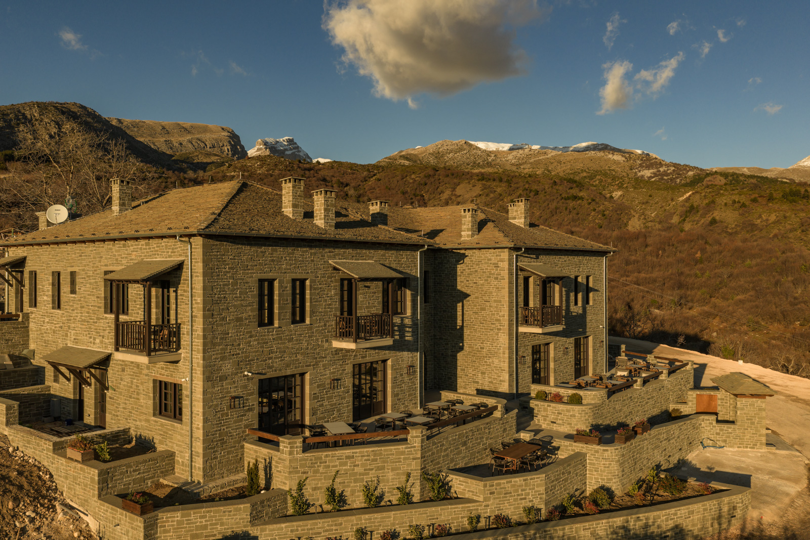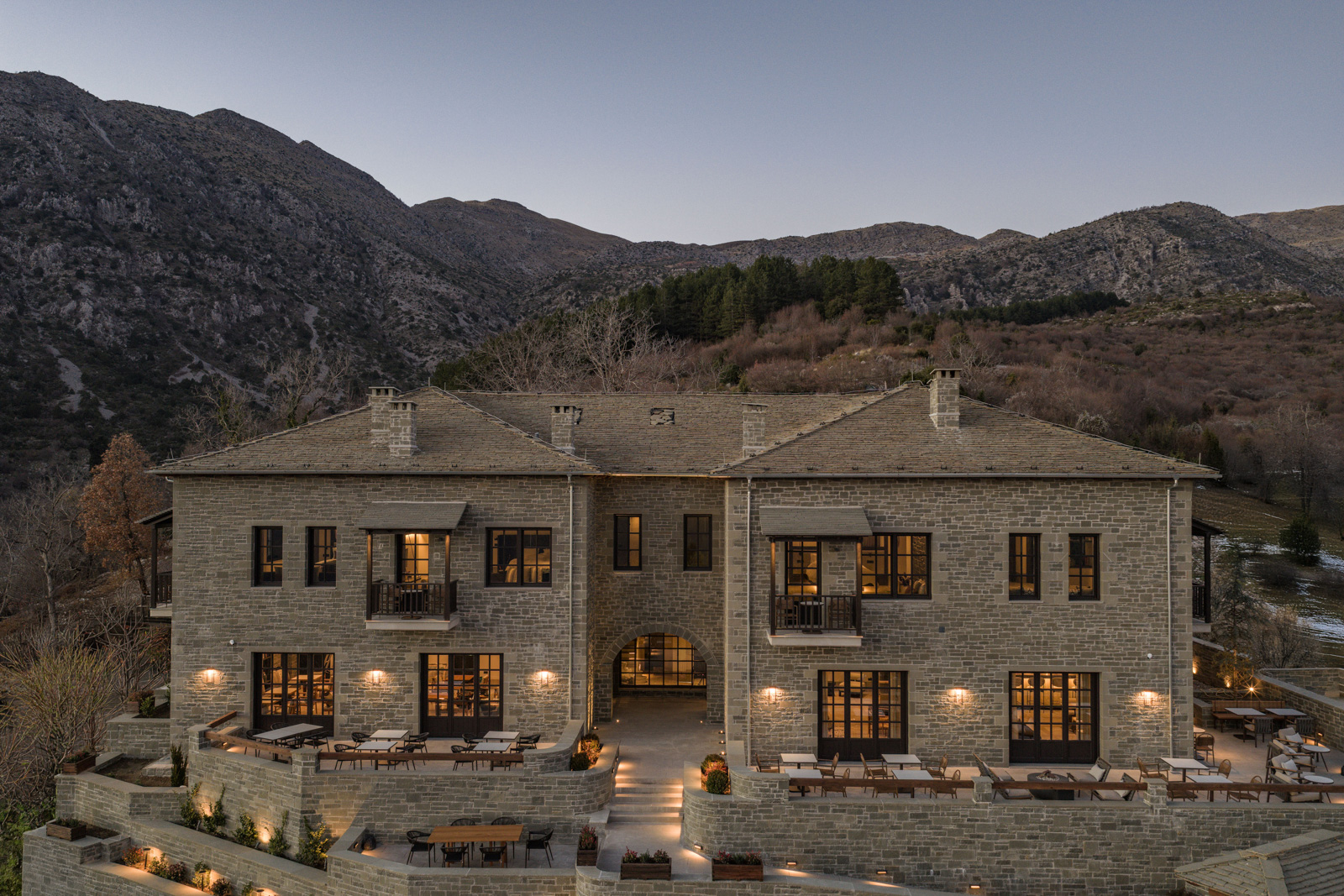 Orenô balances the local architectural memory with contemporary hospitality, creating a hotel that resonates with the Zagori landscape while meeting the standards of high-quality accommodation. It is a warm and welcoming refuge, rooted in the mountain, that does not compete with it but follows its natural flow.